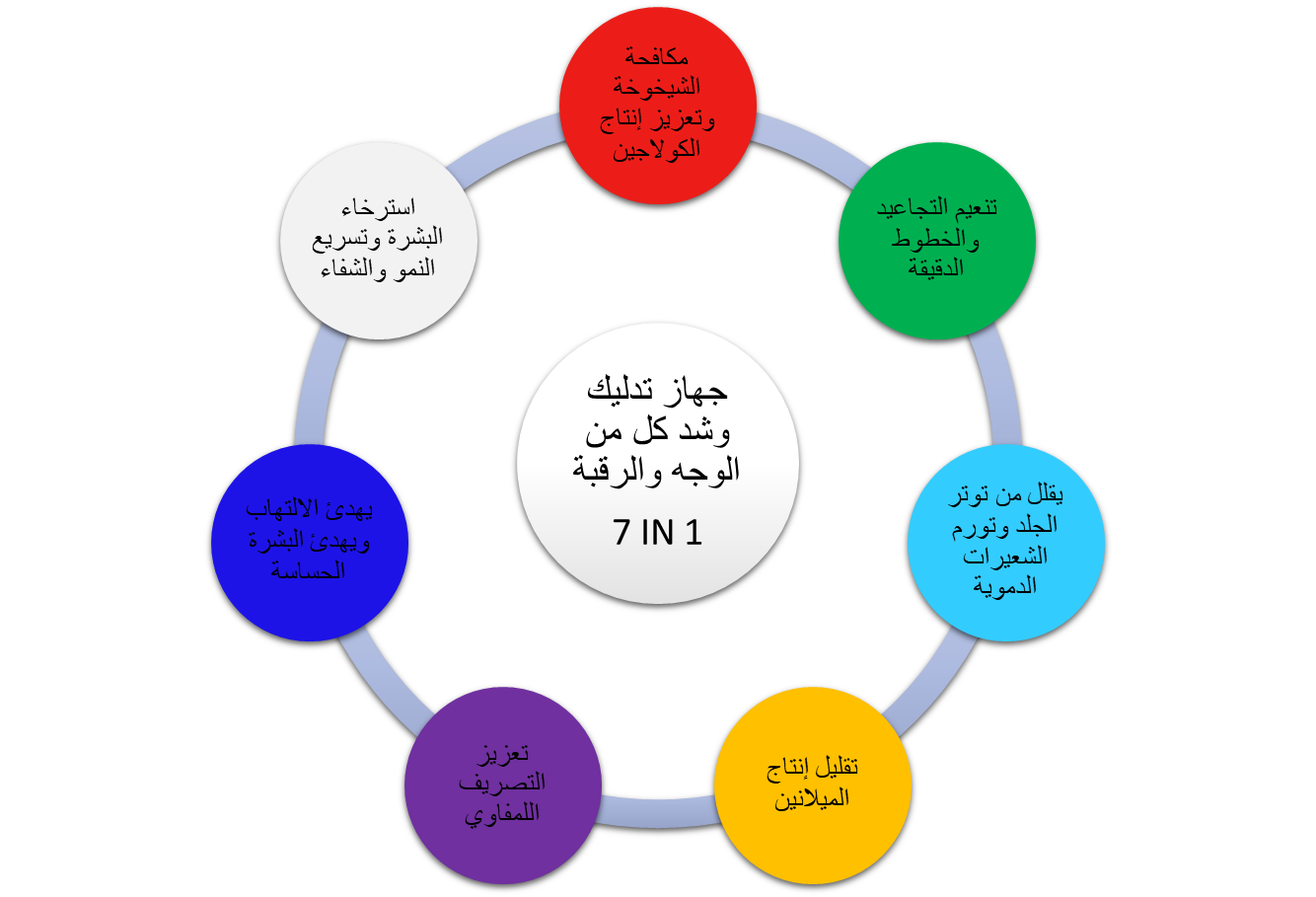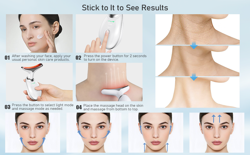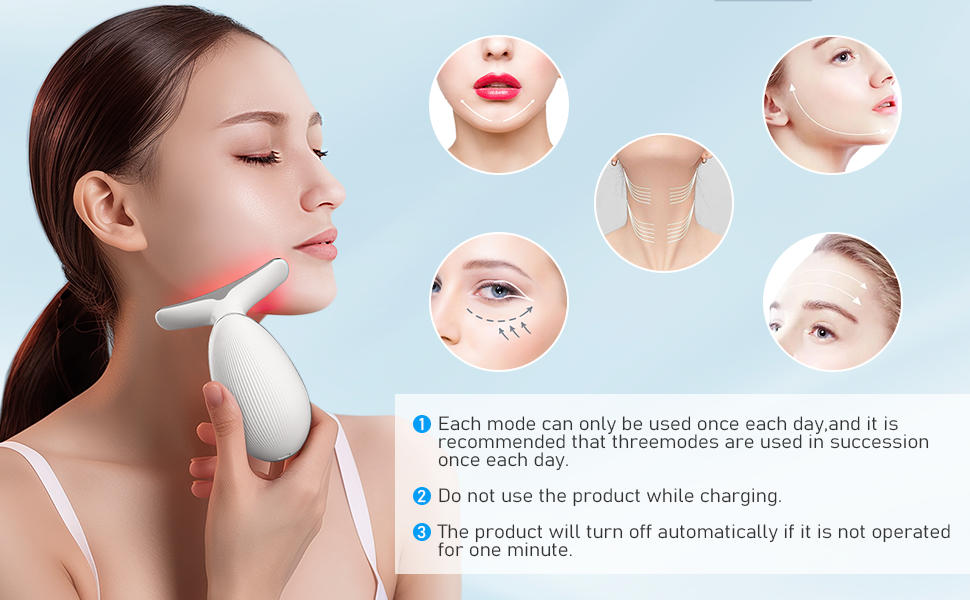 حرك الجهاز بلطف على مناطق الوجه والرقبة بحركات دائرية لمدة 5-10 دقائق.