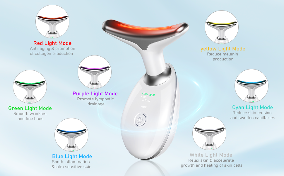 1. شد الرقبة الحراري EMS: يستخدم جهازنا تقنية EMS المتقدمة (تحفيز العضلات الكهربائية) لتحفيز وشد عضلات رقبتك بلطف، مما يقلل بشكل فعال من الترهل ويعزز تماسكها وشبابها.