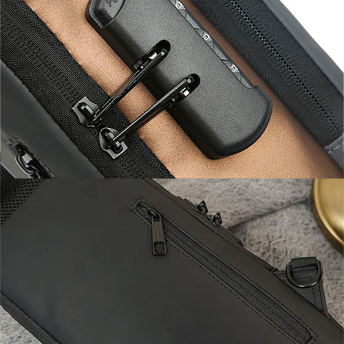 سحابات مزدوجة متينة بتصميم قفل مدمج ضد السرقة تسمح بالوصول السهل وتزيد من الأمان، كما توفر لك مساحة خاصة. جيب مخفي مضاد للسرقة في الخلف يحمي أغراضك الثمينة من السرقة.