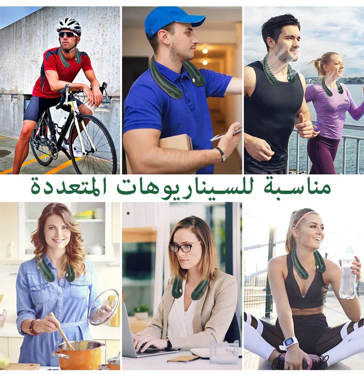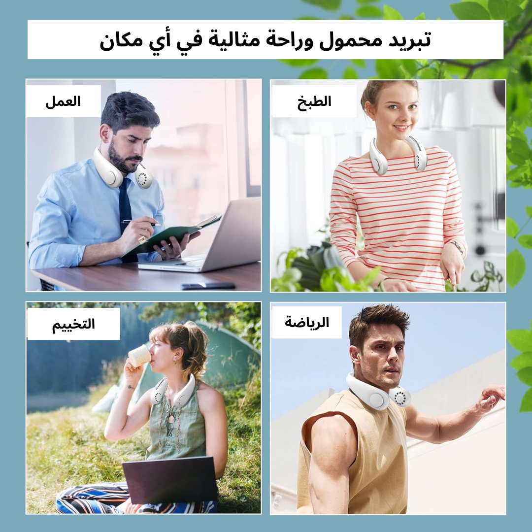 يمكنك تعليق المروحة حول رقبتك، وتتميز المروحة بالهواء البارد لأي اتجاه لتخفيف الحرارة الشديدة