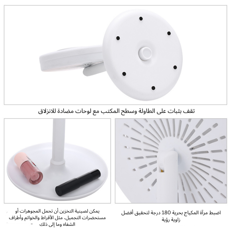 ابدأ تطبيق المكياج الخاص بك، باستخدام مصابيح LED الساطعة لرؤية مثلى.